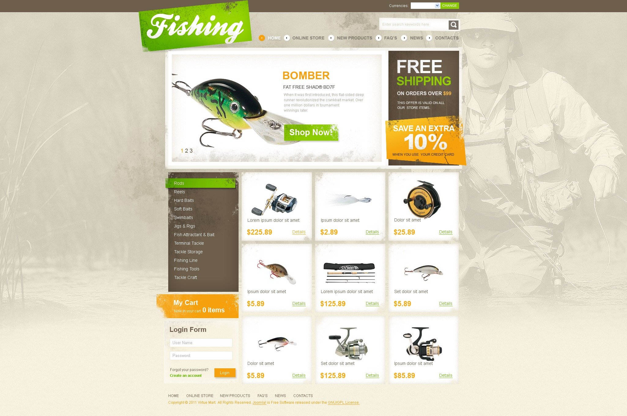 As fishing is mainly men’s hobby, grunge style is rather appropriate for drawing the customers. Slider and the neighboring banner are extremely attractive. Left sidebar contains product categories facilitating the search. The items are presented in separate sections, which are arranged in three columns.