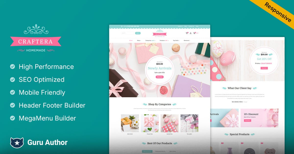 Craftera – Crafts and Gifts Multipurpose Elementor Responsive WooCommerce Theme
