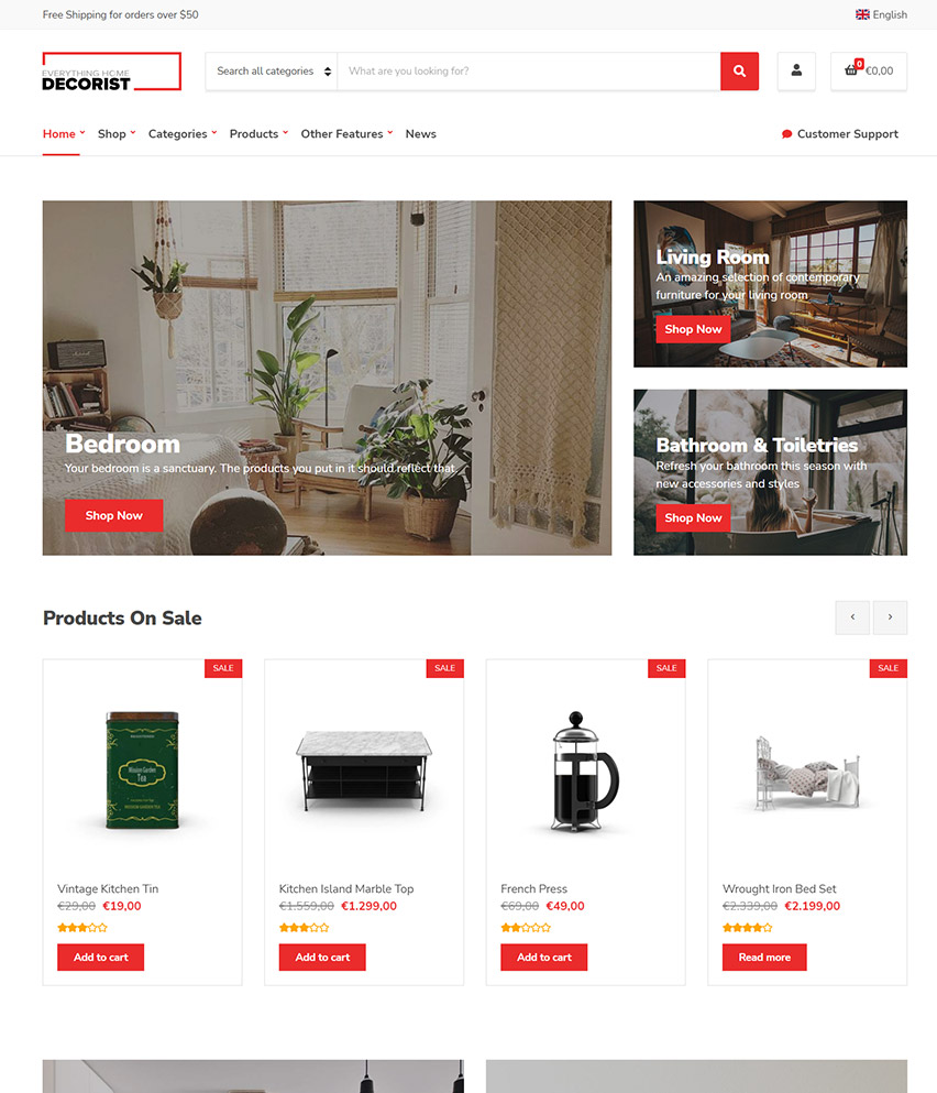 تم دکورِست یک پوستهی مینیمال ووکامرس برای فروشگاههای محصولات خانگی، فروشگاههای محصولات تزئینی، فروشگاههای محصولات مرتبط با مد و هر نوع فروشگاه محصولات فیزیکی است.