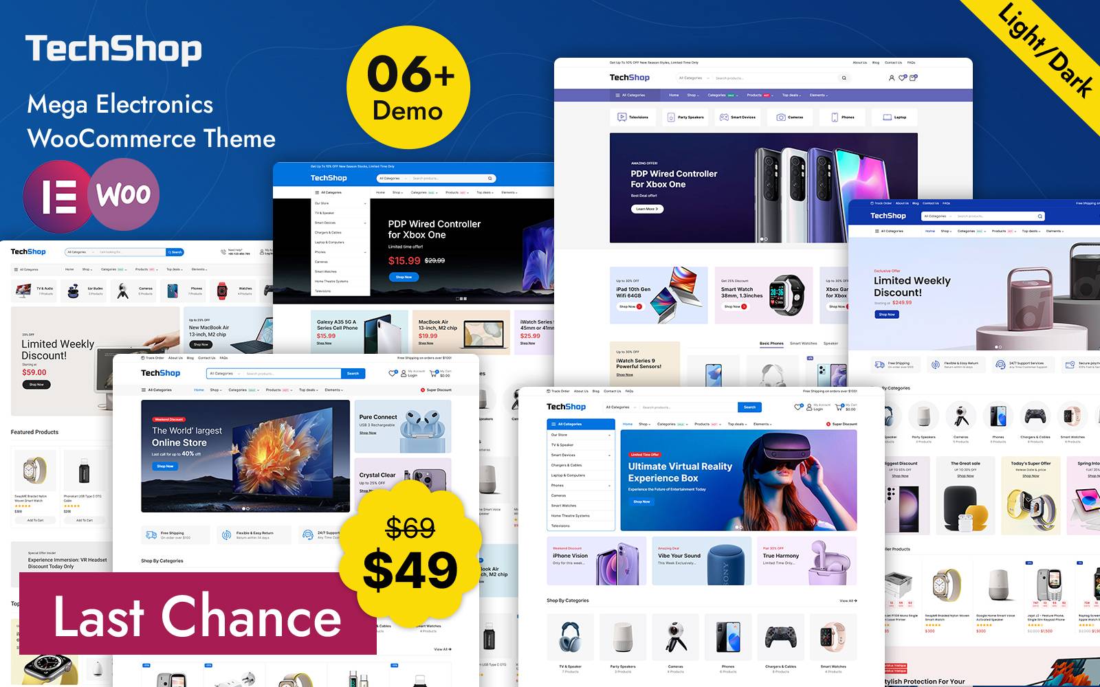 Launch your next-gen tech store with TechShop—the ultimate WooCommerce theme for electronics and tech businesses. Get started today! ?